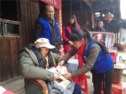 志愿者周小叶代深圳市龙越慈善基金会向夏爷爷敬献新春慰问金500元。