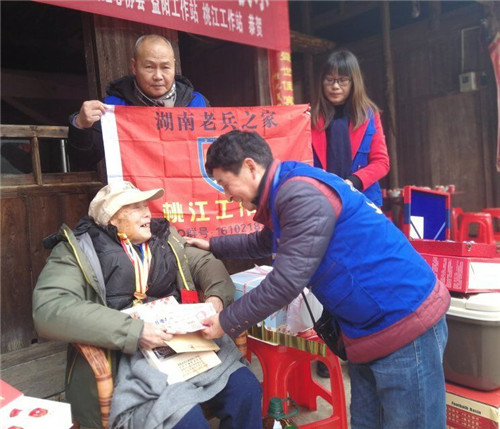 同时送达2019年春节慰问益阳抗日老兵暧冬行活动的慰问金和礼品:白鹿寺慈善基金会的慰问金100元和食用油1桶或大米一包; 湖南老兵之家的挂历、对联、慰问信及绒裤两条;益阳工作站的慰问金100元和益阳抗日老兵画册一本。
