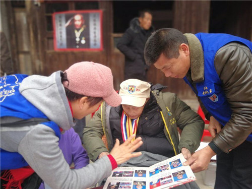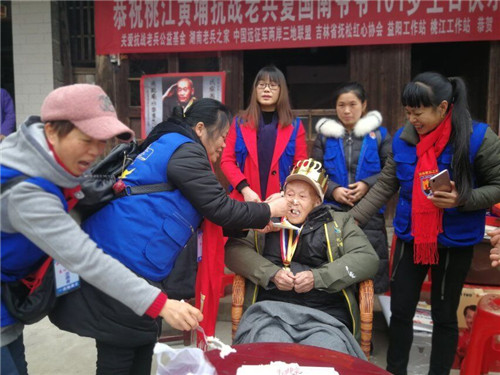 湖南老兵之家益阳工作站志愿者:罗义兵、相约冬季、虫二、格桑花、文倩、赤磊红道、诗诗、天空和桃江工作站志愿者周小叶、卢大哥等一行13人带着全体志愿者的深情祝福,并受关爱抗战老兵公益基金的委托,前往桃江县武潭镇石桥村为原国民革命军79军98师黄埔孤老抗战老兵夏国南爷爷101岁寿诞举行祝寿活动!