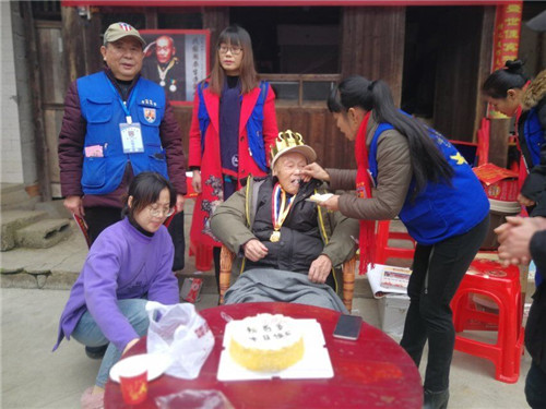 夏爷爷看到志愿者的到来非常开心,慈祥的脸上绽放着幸福的笑容。看到百岁的夏爷爷耳聪目明,思维清晰,志愿者们都感到十分欣慰。桃江县委统战部、黄埔军校同学会的领导也来看望夏爷爷并送来生日慰问金。志愿者们为夏爷爷举行了简朴的庆贺仪式!