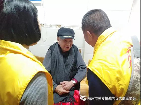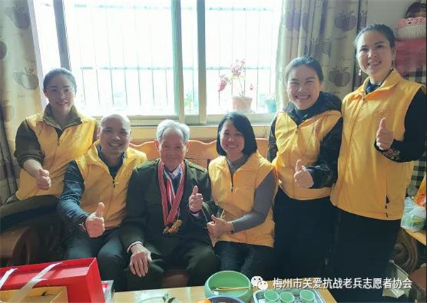 启动仪式结束后,来自梅州市各县区服务队的40多名志愿志愿者兵分三路,对梅州城区7位抗战老兵进行登门慰问。