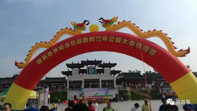 纪念抗战胜利公益大会在容州古城广场上隆重举行,一大早容州古城广场上就已经做好了迎接每一位嘉宾的到来。