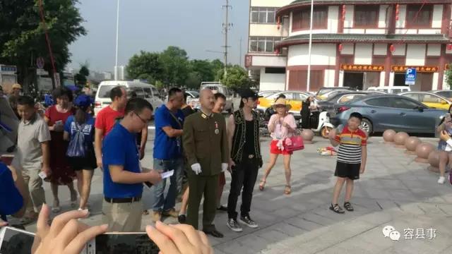 接着,蒋介石扮演者钟一正先生与明星周杰伦模仿者入场,在场的群众为这两位极相似的扮演者拍照。