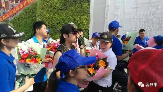 周杰伦模仿者和爱心志愿者们,一起上台为老兵们献花!