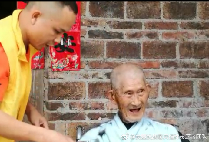今天是抗战老兵陶世云爷爷97岁生日,关爱抗战老兵桂林志愿者团队志愿者前往爷爷家中为他庆祝。为爷爷剪了个清爽的头发,剃了个清爽的胡子。愿爷爷一直这么笑得纯纯的。