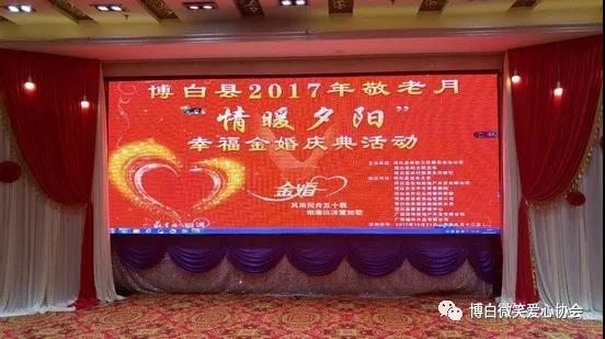 2017年10月31日上午,博白县2017年敬老月“情暖夕阳”幸福金婚庆典活动在县城宝中宝国际大酒店六楼隆重举行。