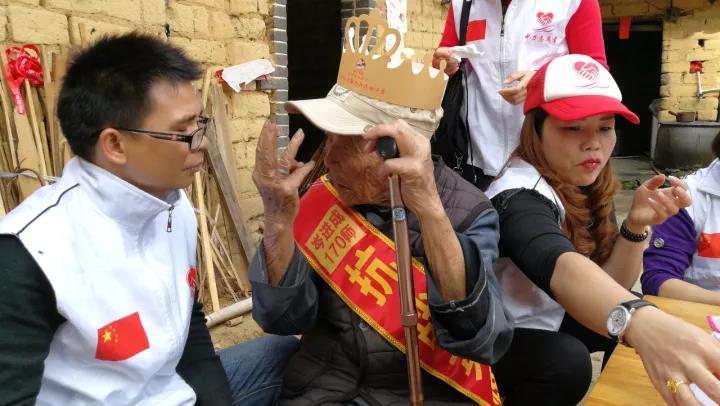 2017年12月4日是北流市沙垌镇独居抗战老兵岑进成的96岁生日,北流市中力志愿者协会的10位志愿者带着爱心蛋糕、爱心贺寿礼金,前往沙垌镇沙垌村岑老家,陪伴岑老过生日、聆听岑老讲打鬼子的故事,让岑老生日不孤单。
