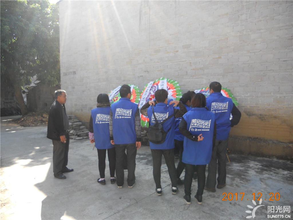 今天我们来到这里,参加邵明良老兵的追悼会,沉痛悼念抗战老英雄逝世。现在我代表广西壹方慈善基金会、贵港市荷城义工协会、广西阳光网全体关爱抗战老兵志愿者向邵老表达深切沉痛的哀悼。