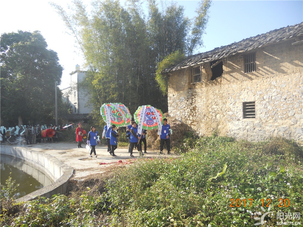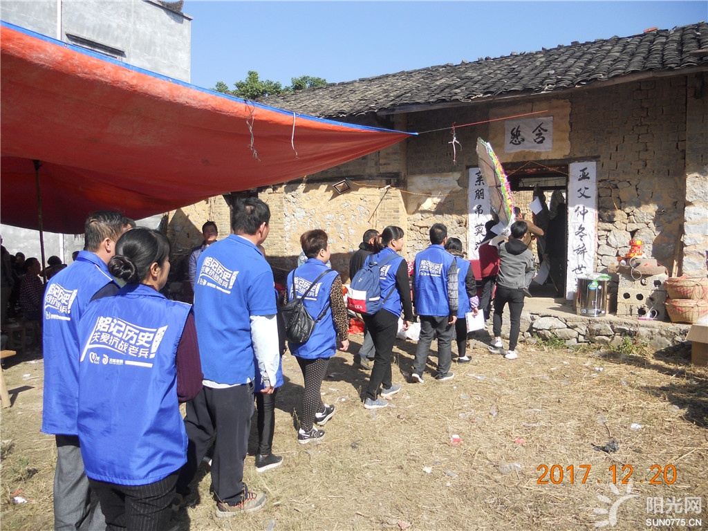12月20日,抗战老兵邵明良的葬礼在平南思乡界新旺村举行,老人的亲朋好友及“关爱抗战老兵”志愿者们向他鞠躬告别,寄托哀思。
