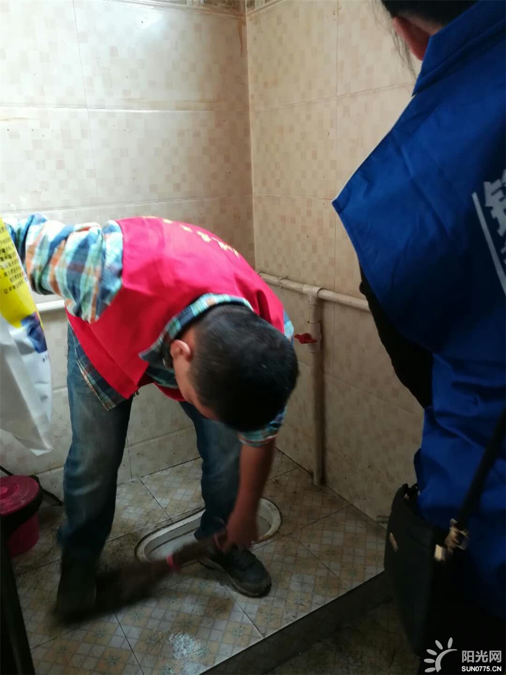 阳光网志愿者到来后,就马上帮刘信辉老兵理发,收拾房屋,打扫卫生,冲洗卫生间,把所有的锅头盖子碗筷,还有老兵油腻腻的脏衣服洗得干干净净。
