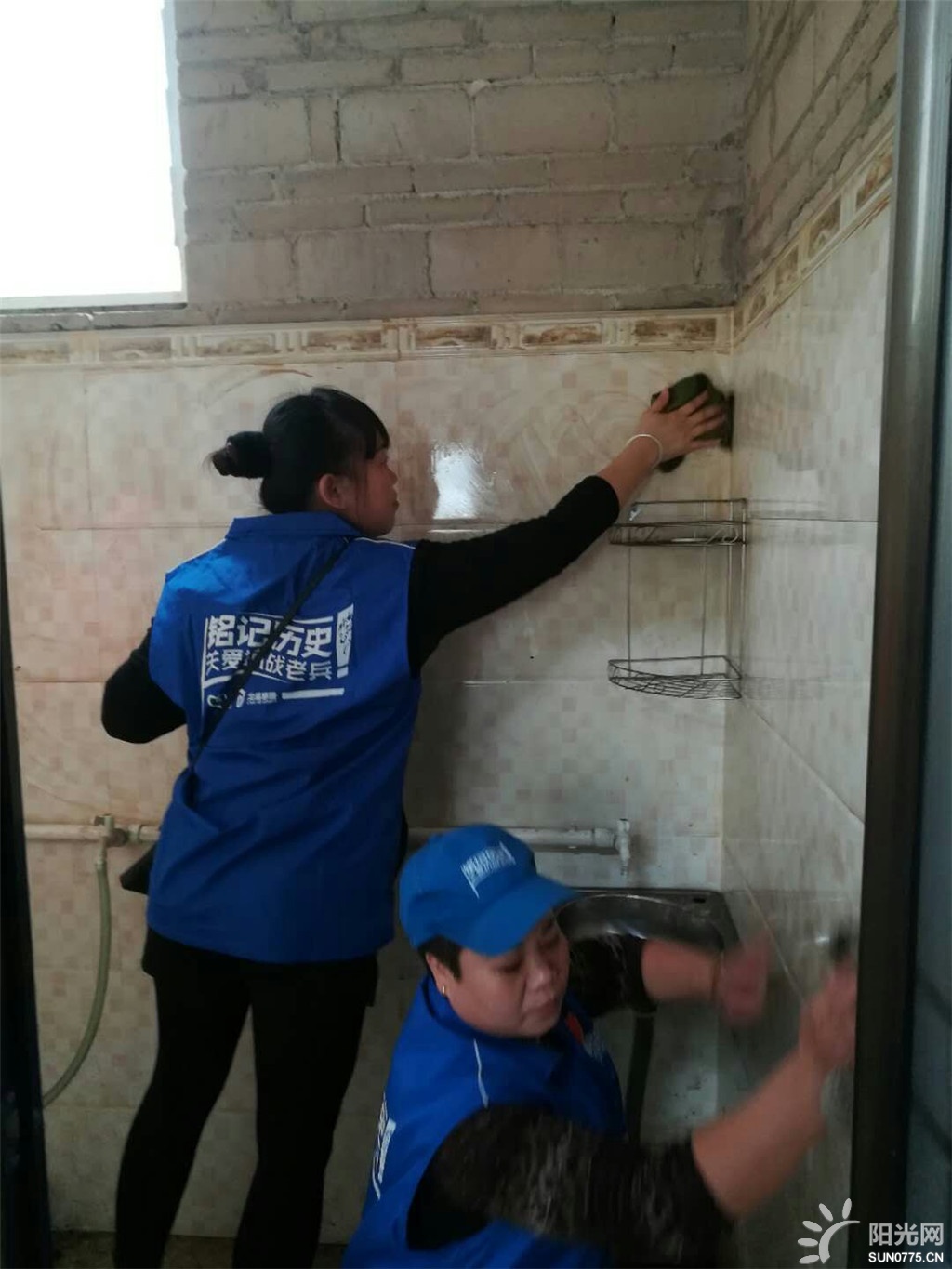 美丽、天空、百合心、迟来的爱、姿欣、暖心、人生如梦等志愿者都很积极地帮老兵把里里外外的家务尽力做到最好。
