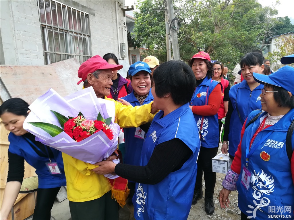 打理好刘信辉老兵房屋的卫生后,志愿者和刘老一起来了一张开心大合影。