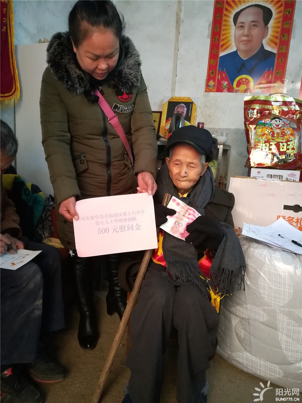 河北省第十六中学李晓静献给李老500元慰问已送到范老手中,还有爱心志愿者平哥捐献给李老40元爱心善款已送到老兵手中。