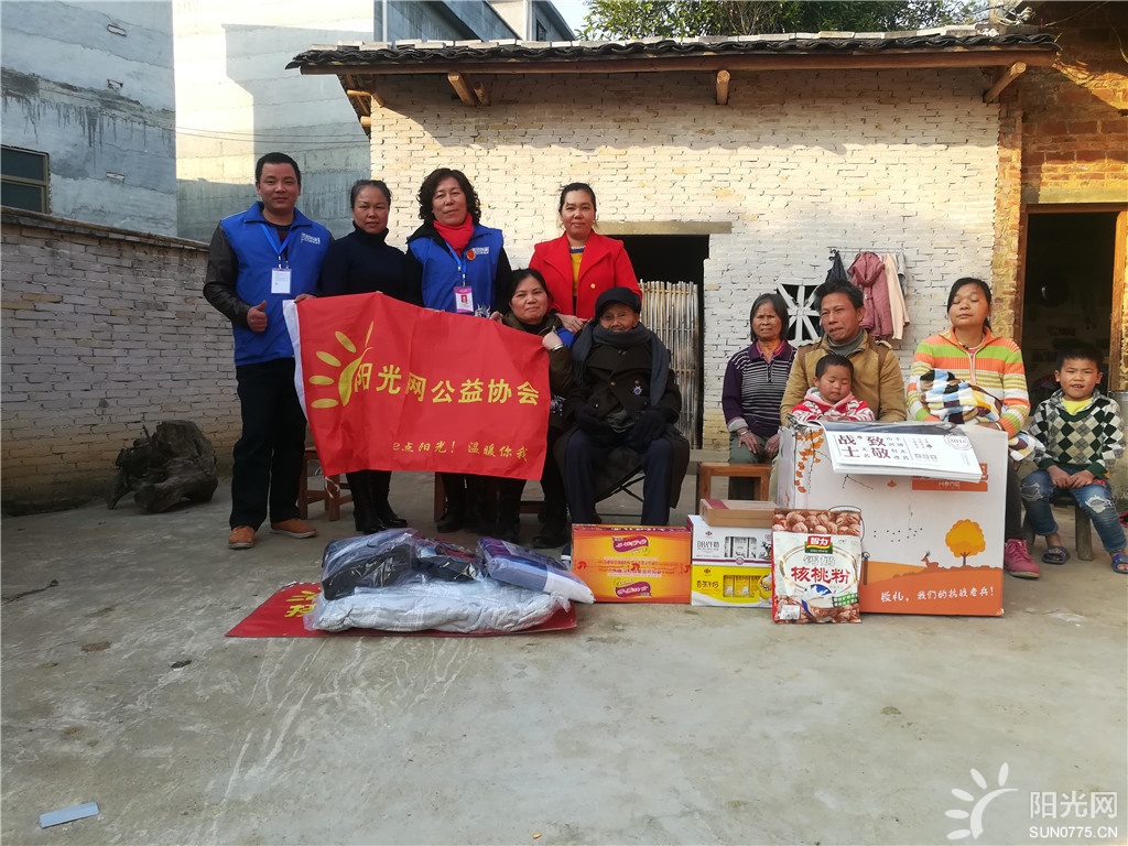 2月3日,阳光网公益协会特地组织一帮志愿者深入平南县的各乡镇分三组线路慰问平南的14位老兵, 第一组线路 :美丽、百合心、美、懂你、开心快乐五名志愿者到思旺镇、国安 、同和、思界乡慰问范才周、张家福、李子振、黄庆仲(共四位老兵);第二组线路志愿者钱多多、万家帮-帮主、秋天、风在吹、晓到丹竹团结村、东华乡、西山慰问黄昌荣、卢其世、林茂英、黄进福(共四位老兵); 第三组线路志愿者正宗宝、张亮、 尚升、消费联盟长到大坡、大洲、六陈、寺面、大新慰问杨枝松、许炳庚、李儒训、玉叙生、刘信辉、王翠英(共六位老兵),志愿者们为老兵送去社会的关爱与温暖,让老兵们开心度过一个欢乐祥和的春节。