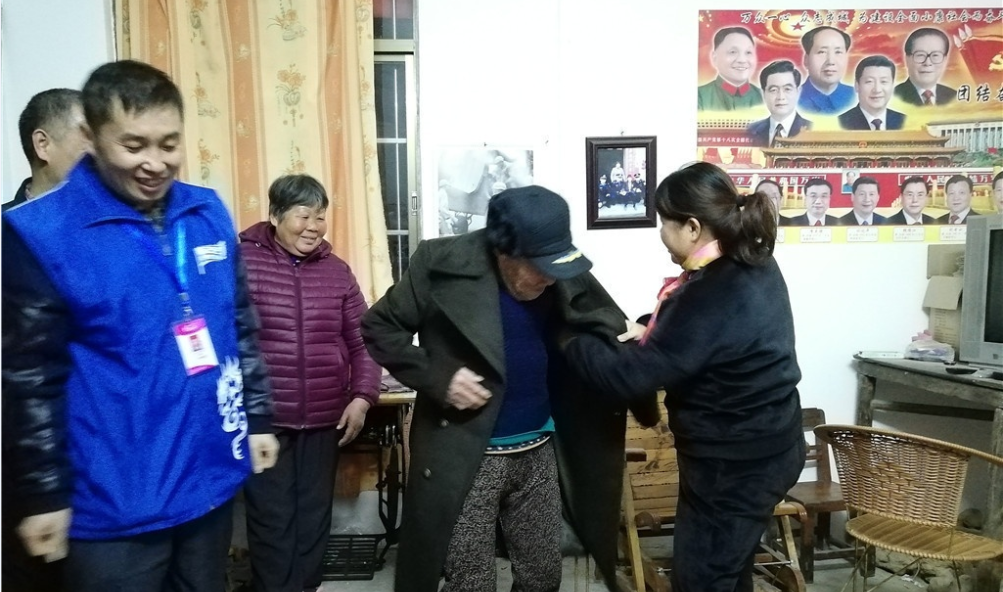 阳光网志愿者团队第三组来到大洲镇杨枝松老兵的家慰问杨老。