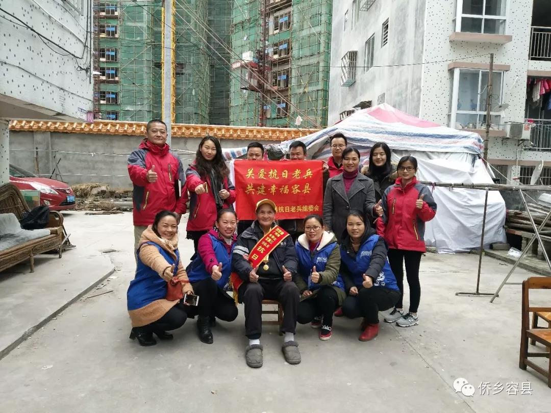 2015年,容县组建关爱抗日老兵组委会,每年都联合政府部门及社会各界不定期对老兵开展日常陪伴、生日慰问、中秋、春节慰问、患病探望及辞世送别等活动,社会各界捐款捐物折价超过40万元,所得款物全部用于关爱抗战老兵公益活动,得到了老兵和家属及社会各界的认可和好评。