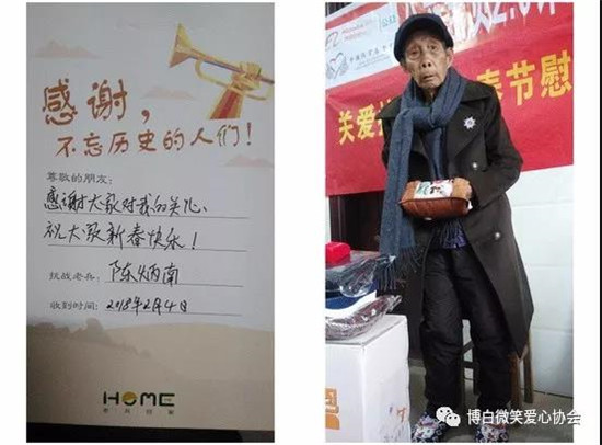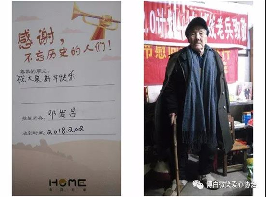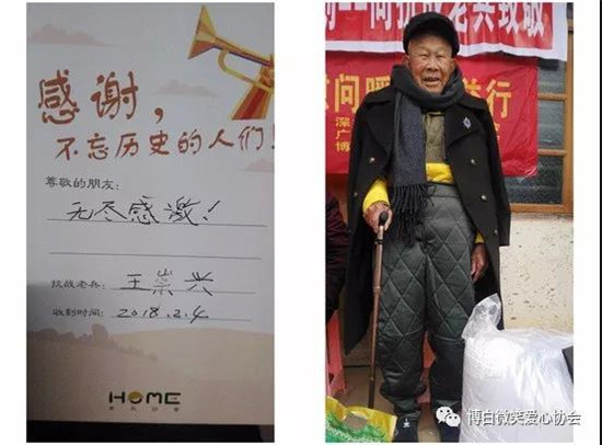 前段时间,博白微笑爱心协会陆续开展了关爱抗战老兵春节慰问暖冬公益活动,给全县健在11位抗战老兵送上慰问品和慰问金,传递了社会各方对老兵们的关注与爱戴。