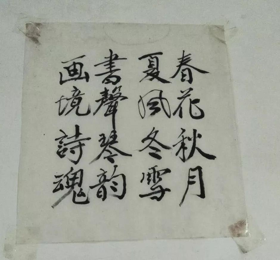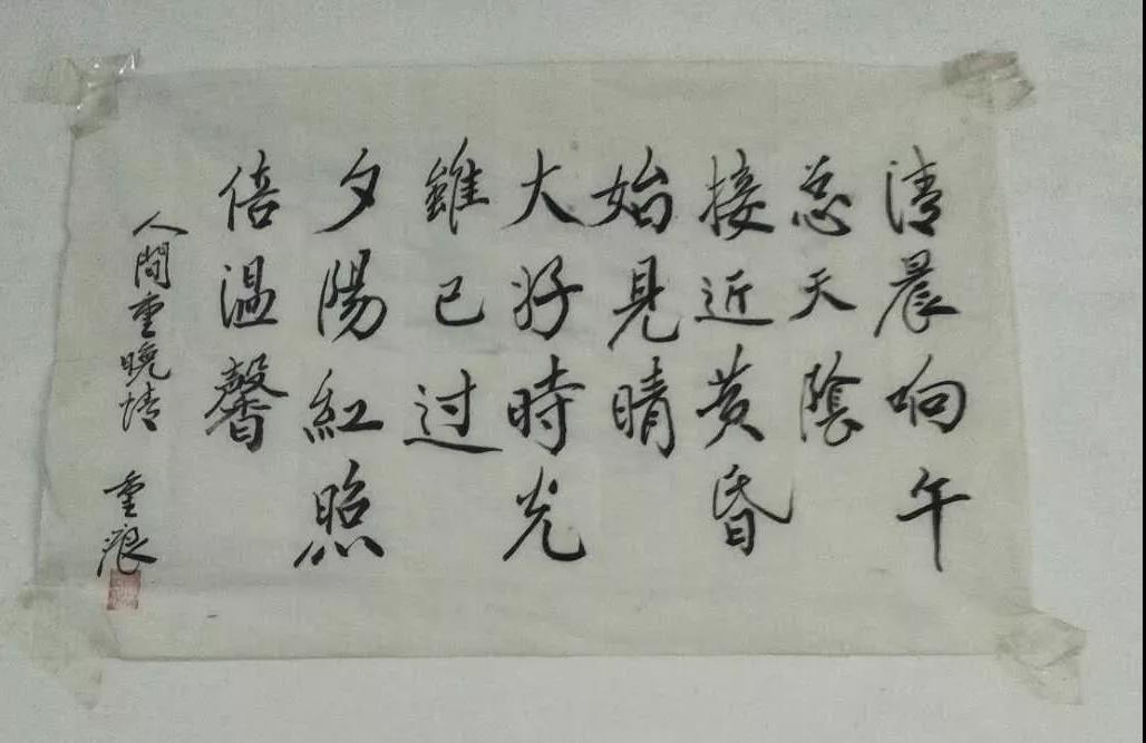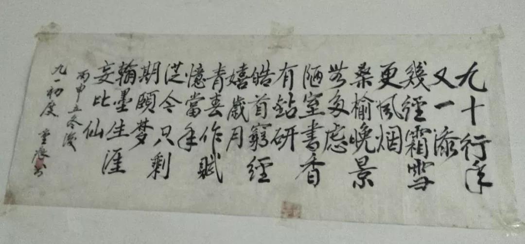 廖老是一个有文化的人,晚年用我们广西的山歌的形式写了《我的抗战行》,离开的几天后,他的儿子还给我发来廖老写的诗。诗写在小小的纸片上,用透明胶贴在墙壁上,他的字平和干净。是啊,经历过那么多的磨难,他的内心却是如此的平静,就连“凋零”的方式也是平静的。