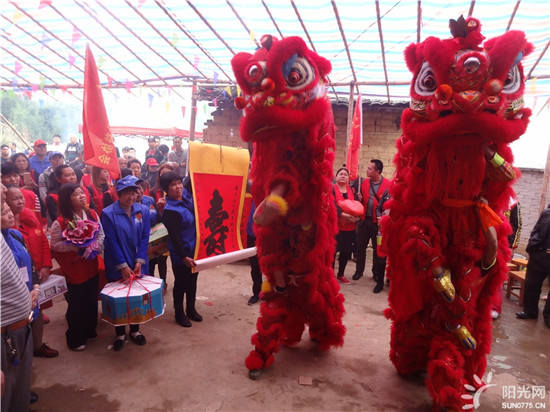 我们的到来,得到老兵的亲属以及亲朋好友的热烈欢迎,龙狮高举、欢呼跳跃、燃放喜炮,齐来祝贺。