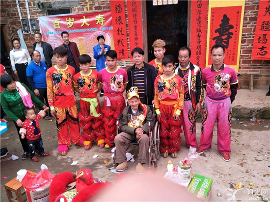 陈忠龙狮队和老寿星爱心合影