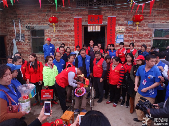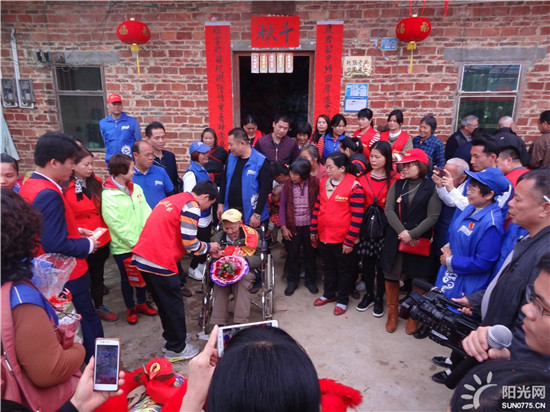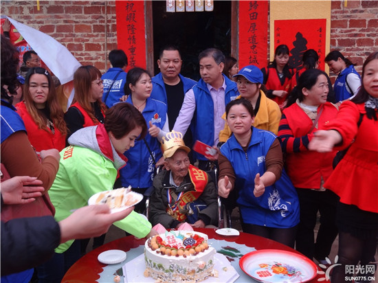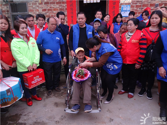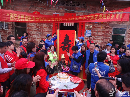2018年3月13日,是个特别的大好日子,广西平南县同和镇中国远征军李子振老英雄迎来100岁寿辰,该村里一片欢声笑语,比过年还热闹,广西阳光网美丽,万家帮-帮主,洪红姐,道敏,正宗宝,栩(阿静),懂你,钱多多,张家三少,甜甜心,张亮,李教练,百合心,泰湖二手车,陈文连,乐乐,小玲,彤,容,平哥,辰龙之旅,星雨,开心快乐,伯寅,阳光,荷花,菠萝、添缘健康管理颀问,流星雨,平南龙舌烤鱼,平常心,随心,明天会更好,人生如梦,新雷电动车,家和美食大海等志愿者在阳光网方总的带领下和贵港市荷城义工协会无花果,芳草依依,柴沬,韦悦德4人,还有广西平南县陈忠龙狮团10人,平南电视台王主任等3人,一行近70人前来共同为百岁老寿星祝寿助兴。