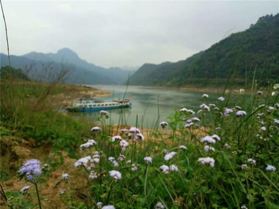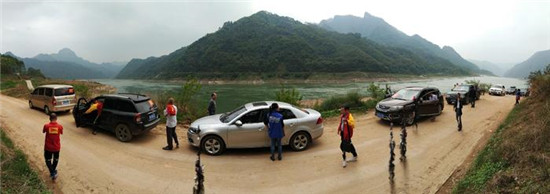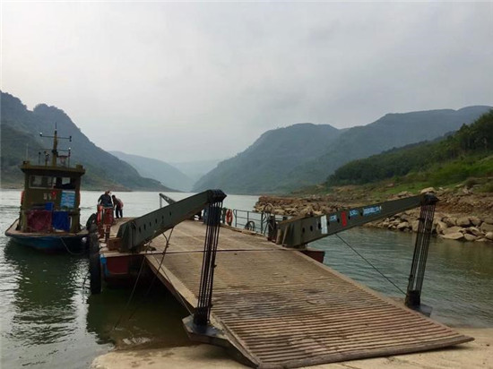 午餐后十多部车组成的车队,行驶一个多小时来到黔江碧滩渡口,车辆人员乘坐中型拖船过渡。