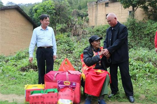 乡亲把杨老和众人带到家门口,一声“三叔公”令人动容。