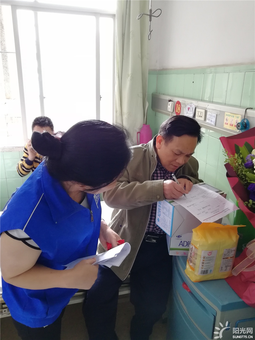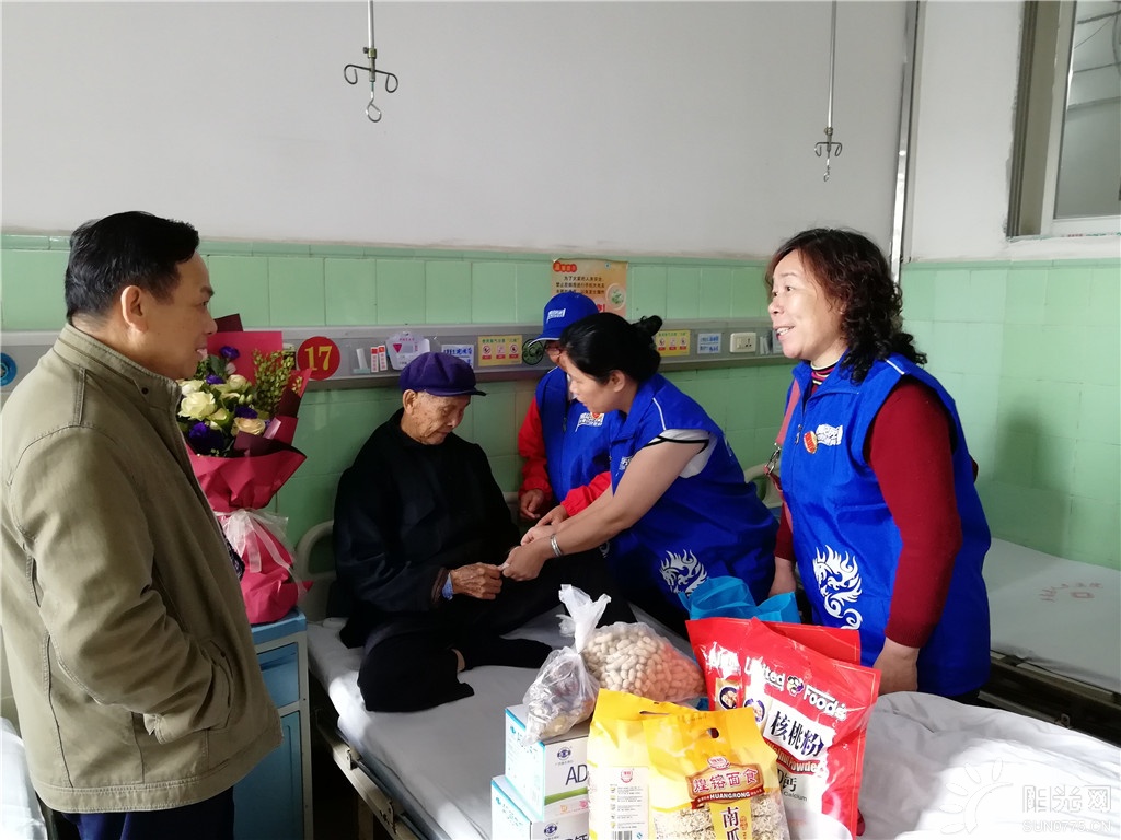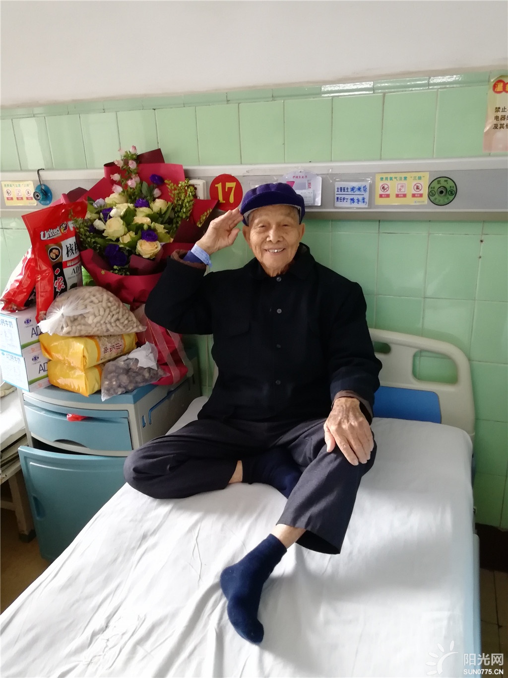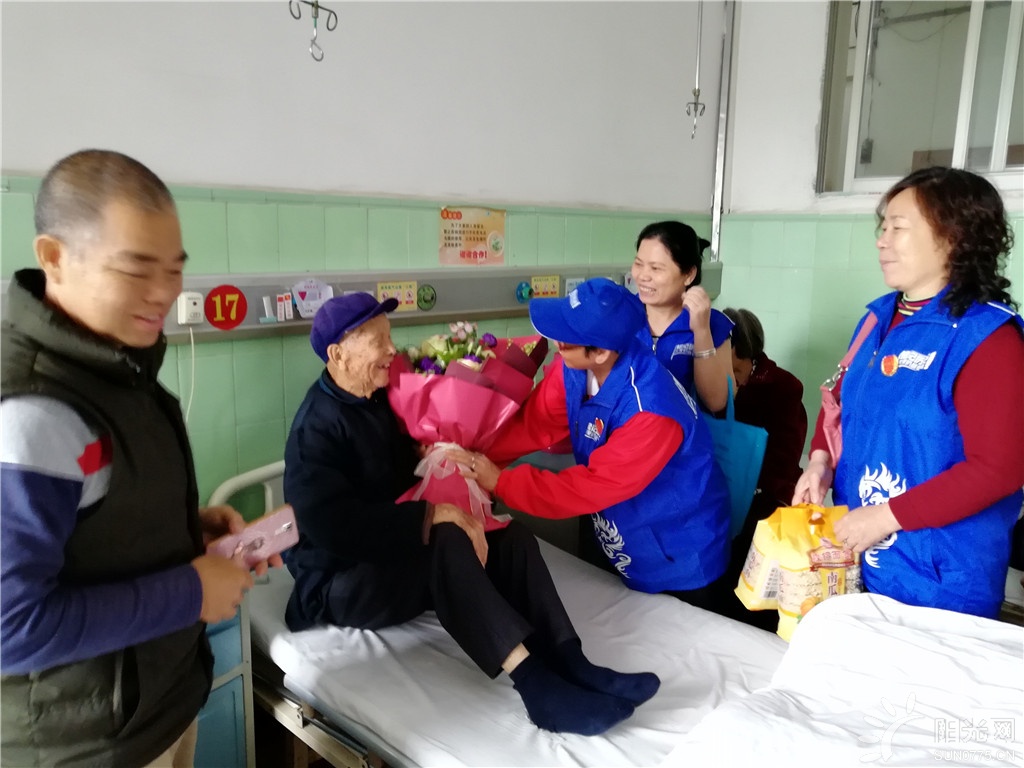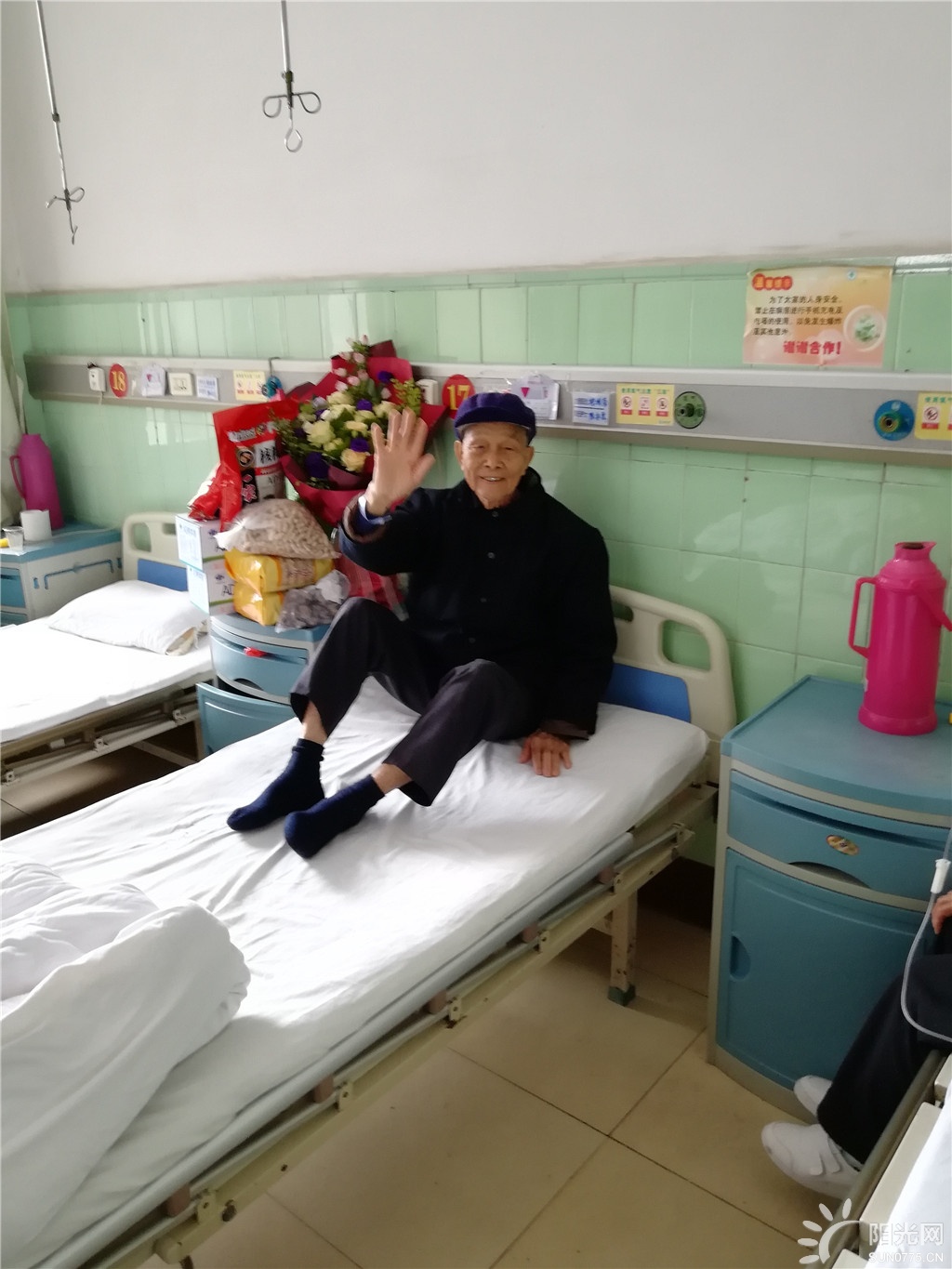 因为抗战老英雄张家福身体不适住院,2018年4月15日,广西阳光网公益协会志愿者正宗宝、美丽、百合心、洪红姐、吴伟全、姿欣、钱多多前去探望,给张老送去美好的祝福!