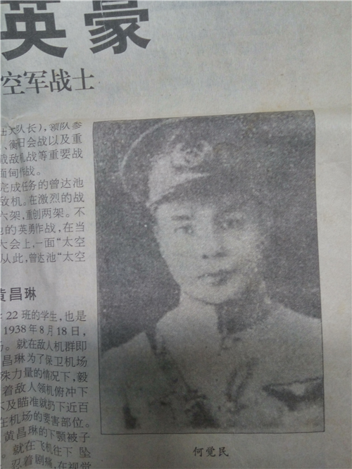 茫茫人海,怎么找,从何找?我先在关爱容县老兵组委会群和先锋群问,有谁认识飞行英雄何觉民的后人?四川壁江志愿者找他的后人。然后打电话与容县政协区主任沟通。区主任研究容县抗战多年,可谓“抗战通”了,他说何觉民是容县自良街人,但是他后人不在容县。寻找的范围缩小了,我想最好的办法是找到自良街委会的领导或者自良派出所,我又打电话问自良籍的吴姐是否认识自良街委领导,她说不认识,可以帮忙向她大哥打听,但她暂时没空。于是我又打电话给曾在杨梅派出所工作过的所长,叫他提供自良派出所的电话,他说没有,叫我打114查询。这时群里的八姐说帮忙联系。我又叫爱人问他在自良地税工作的同事,问他能否提供自良街委的电话。这时我想到了邻居曾宏是自良人,可是没有他的联系方式,问爱人他说也没有,我叫他问公公。公公手术后身体非常虚弱,说话都没有力气,可他还是帮忙找到曾宏的电话,可是曾宏说他也不认识自良街委的人。 我说你想想有谁认识的,或者是否认识有自良街姓何的人,他说有位邻居是自良街姓何的,放下电话,曾宏立马就去找那位邻居,真是踏破铁鞋无觅处,得来全不费功夫。那位邻居说何觉民是他祖叔,要知道详情的话只有联系她三叔,三叔是何觉民的过继儿子,现住在珠海,可是她也没有三叔的电话,要问父亲才知道。过了十多分钟,她把珠海三叔的电话给了我,我叫她先和三叔沟通,不然有可能他不接我的电话。打通何觉民儿子电话的那一刻,我激动得不知说什么好,该说什么才让能让他相信我?老人家多次问我怎么得到他的电话号码?找他有什么事?我说电话是你侄女给的,可是因为急,也忘了问她的名字,他又问我怎么认识她的侄女?老人可能是耳闻目睹个别骗子专门打着关爱老兵或烈士后人的旗号骗钱,最终什么事也没做,因此寒了他们的心。我反复说我是绿荫中学的老师,也是关爱容县抗战老兵组委会的志愿者,父亲也参加过抗日,重庆市壁江区政府想为抗日英雄立一座纪念碑,你父亲是抗日英雄,他们想找你了解一些何觉民的情况,他说最担心的是给了钱什么也没做。我说我们保证不会骗你的钱,以后凡是找你要钱的你都不要相信,聊着聊着,老人消除了戒备之心,他说,他是何觉民的过继儿子,何觉民没有结婚,抗日前夕,一名和他相恋多年的女同学叫他回来结婚,何觉民说等到抗日胜利再结婚也不迟。他告诉家人,如果他牺牲了,就过继侄儿给他。放下电话,我心情久久不能平静,无数先烈为了国家和人民的利益不惜牺牲自己的一切,我们今天来之不易的生活是他们用生命换来的。我们互相加了微信,也把重庆市壁江区李媛媛写的《血祭长空》发给他,并向他推荐了媛媛的微信,他们也互相联系上了。