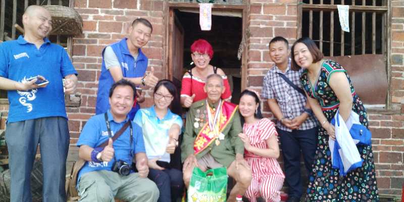 2018年6月27日,援助抗战老兵玉林行动组的志愿者探望抗战老兵苏祖元、黄国强。