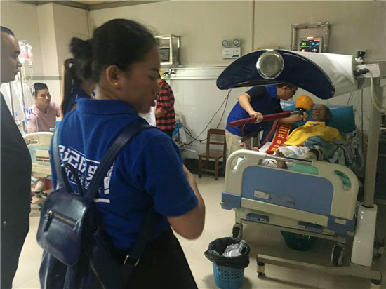 与8月7日下午刚入院时相比,老人的病情略有好转,但康复情况不大理想,几天都不愿吃东西喝水,还一直吵着要回家,任凭医生、儿孙怎么劝怎么说都不听,所以只能祭出法宝,很严肃地跟卢老传达长官命令,把医生说是军医,是长官命令派来给你治伤的,你必须无条件执行命令配合治疗,多喝水多吃东西,听到是长官命令,卢老精神马上不一样,乖乖听话答应!然后又哄等你好了,帮你介绍个阿婆,就很乖了!