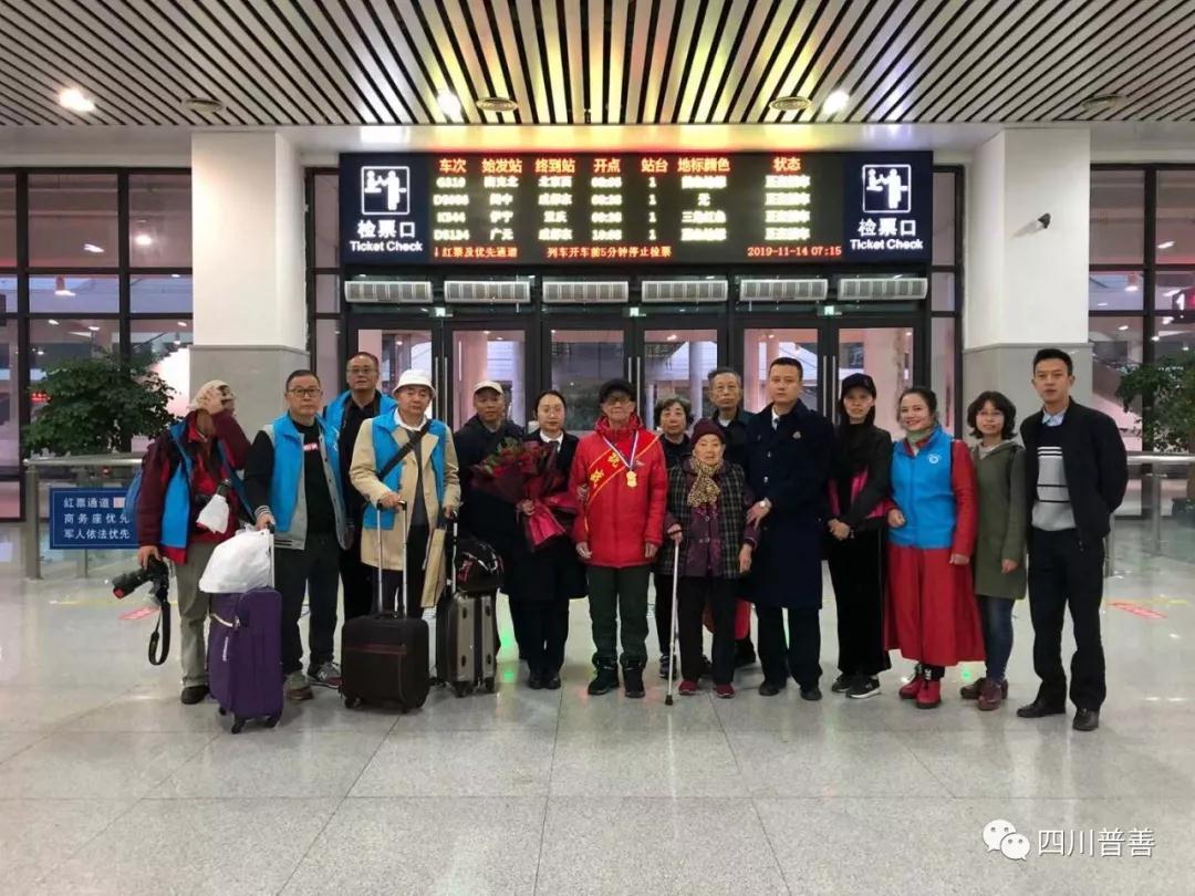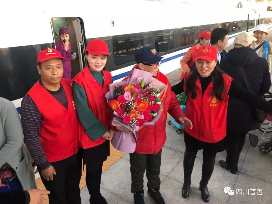 南充市顺庆区恰然志愿者协会几名志愿者一早来到火车站为雷老一行送行,《南充晚报》记者祝真珍也来到火车站对雷老及子女进行现场采访。