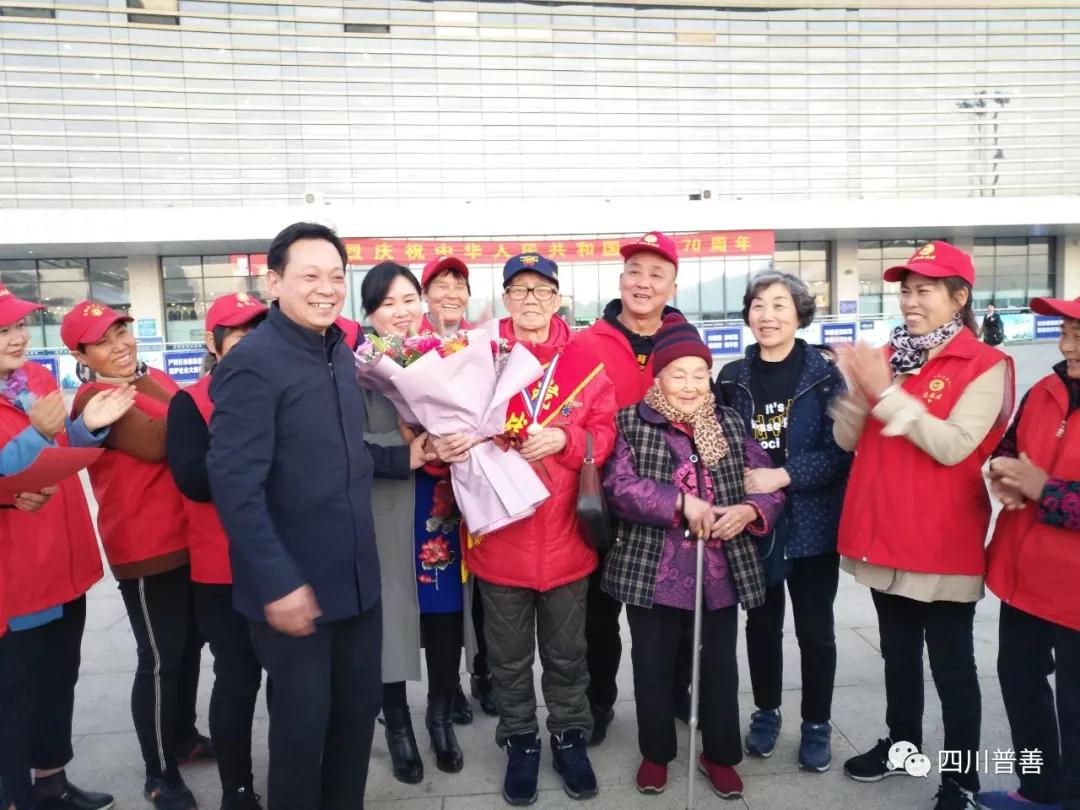 雷老感动得落下激动的眼泪,声音哽咽说:“感谢共产党的好领导,感谢四川普善、深圳龙越、滴滴公益和南充志愿者满足我这次回老家省亲祭祖的心愿,你们是好人啊,谢谢你们了!”