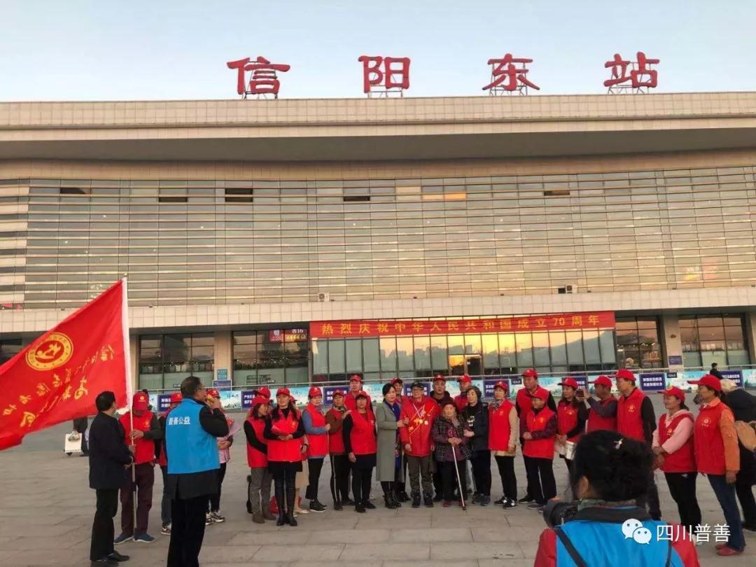 下午5点零1分,列车准时抵达信阳火车东站。雷老一行走出车厢,信阳市公益志愿者协会、信阳寿康爱心老年公寓志愿者代表手捧鲜花在车厢门口迎接雷老及夫人;在火车站出站口,20多名志愿者分列两排,等候雷老一行出站。