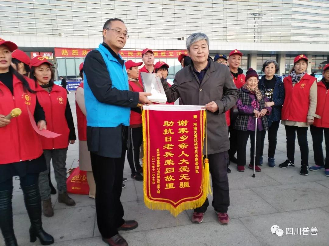 在迎接仪式上,四川省普善公益慈善促进会会长助理刘坤代表四川普善致辞。他对河南志愿者团队为欢迎雷老返乡所作的精心准备和热烈的欢迎仪式表示衷心地感谢,希望两省志愿者为了一个共同的目标携手合作,将关爱抗战老兵的工作做得更好。