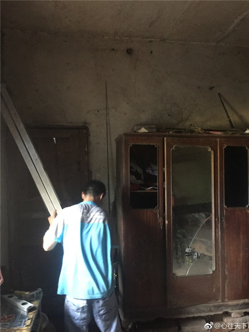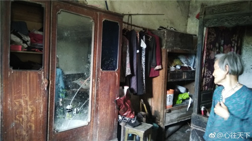 烈日炙烤着山城重庆,就连北碚区三圣乡的山村里也感觉不到凉意。93岁的陈银吉爷爷是一名贫困老兵,双目失明,家境清贫。房子是儿子们以前打工挣钱一起修的,二十多年的尘埃,非常老旧。