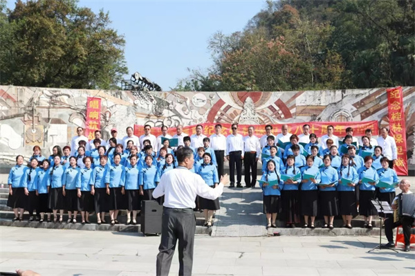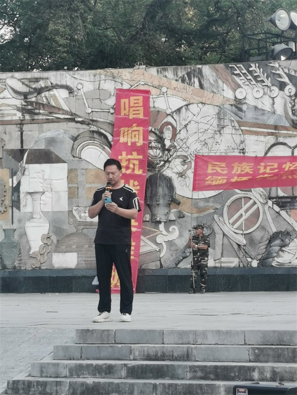 11月10日上午,纪念桂林保卫战80周年的文艺活动在七星公园华夏广场隆重举行。活动由桂林诗词楹联学会理事唐基苏主持,他庄重而深情地宣布活动正式开始。全体起立,齐唱国歌,歌声激昂,表达了对抗战英烈的无限敬仰与缅怀。