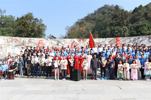 ▲嘉宾与南宁黄埔后代在七星公园合影