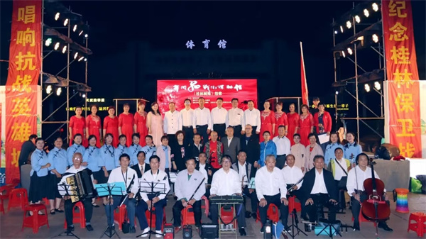 随后,活动进入了文艺节目表演,演员们经过多次的排练以及对桂林保卫战将士无比的敬仰,加深了观众对桂林保卫的认识,尤其是春风诗社社长李平华朗诵诗歌《桂林保卫战》,更是给观众留下深刻的印象,很多人通过视频发出后,获得了网友纷纷点赞。