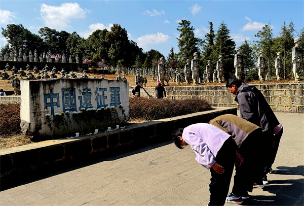 站在松山腰的观景台上,可眺望滔滔怒江和滇缅公路咽喉要道“惠通桥”;松山南侧宽阔的广场上,有中国著名雕塑家李春华老师创作并捐赠的气势恢宏、闻名中外的“中国远征军雕塑群”。每天都有天南地北的游客来到松山,凭吊往昔抗日战场,祭奠为国捐躯的抗日英烈。