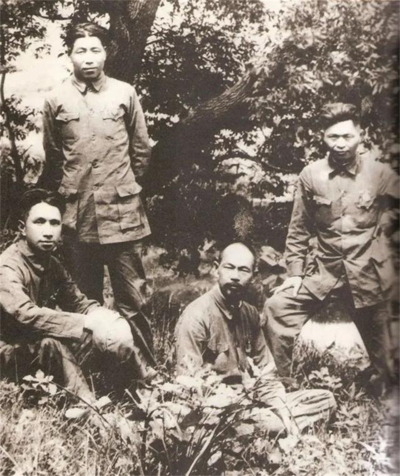 图为新四军2支队粟裕、罗忠毅、罗化成、王集成合影。