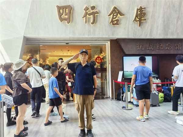 今天是8月13日淞沪会战88周年纪念日。我再次来到了四行仓库抗战纪念馆。四行仓库纪念馆的门牌在光影中沉静,像一位沉默的见证者,迎接着络绎不绝的来访者。我站在馆前,望着那扇熟悉的大门,耳畔仿佛又响起八年前的脚步声——那是两位百岁老兵踏过台阶时,拐杖轻叩地面的声响。