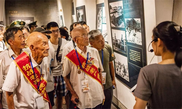 那是2017年的8月13日,也是这样一个晴朗的夏日。我作为河南关爱抗战老兵公益团队志愿者的一员和另外两名志愿者一起陪伴宋宝兴、孙永清两位老兵来到这里。彼时两位老兵都已101岁,是淞沪会战为数不多的亲历者。在参加完淞沪会战80周年纪念活动后,他们提出要到苏州河畔走走,看看当年战友们用生命守护的四行仓库。我作为陪伴老兵志愿者,至今记得当两位老人颤巍巍走到纪念馆门口,宋宝兴老人被门前那几级矮矮的台阶绊了一下,身体猛地向前倾斜,我急忙下意识用力搀扶待老人站稳镇静后,慢慢走进纪念馆大厅。