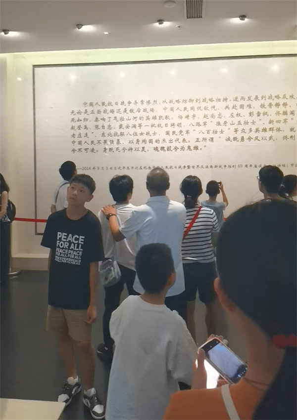 展厅里人来人往,有头发花白的老人,拄着拐杖,在史料前驻足良久,不时用手帕擦拭眼角;有穿着校服的学生,拿着笔记本,认真记录着墙上的文字,偶尔和同学低声交流;有穿着工装的上班族,听说四行仓库抗日战争纪念馆恢复开放利用午休时间急忙赶来,在谢晋元塑像前深深鞠躬。不同的年龄,不同的职业,此刻都怀着同样的敬意。