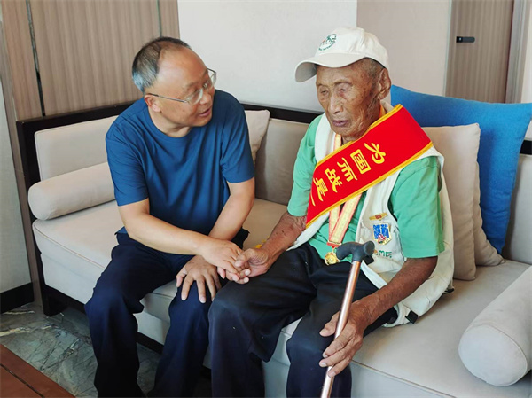 当天上午,两位抗战老兵还坚持前往铁山抗日阵亡将士墓地进行拜谒。原本,考虑到高温天气和老兵们的高龄,组织者曾打算取消这一环节。然而,当他们将这一想法告知两位老兵时,老兵们却坚定地表示:“纪念抗战胜利80周年意义重大,我们要把这一消息告诉我们为国捐躯的战友们,一定要去!”这份对战友的深情厚谊,对历史的责任感,让在场的每一个人都为之动容。