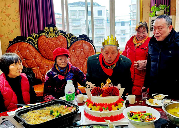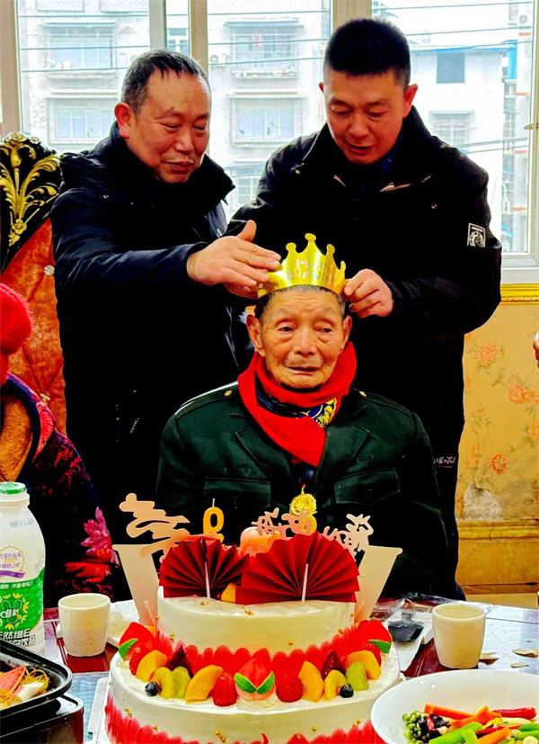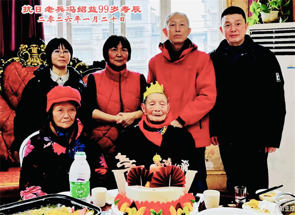1月20日,家住南充市顺庆区潆溪镇的抗日老兵冯绍益迎来九十九岁寿辰。南充民革党员与四川普善公益志愿者专程前往祝寿,向这位历经烽火岁月的英雄致以崇高的敬意。