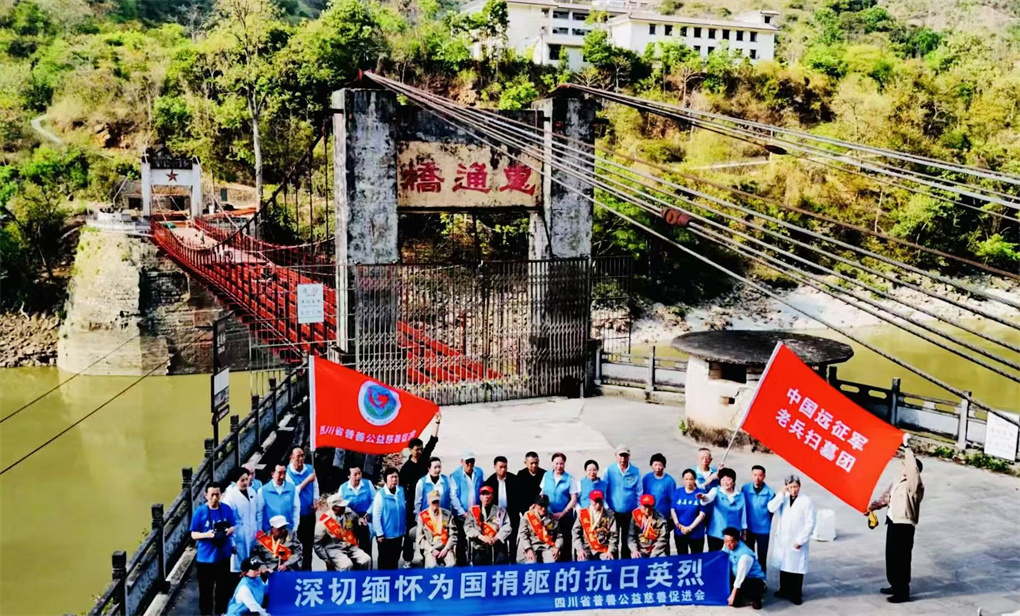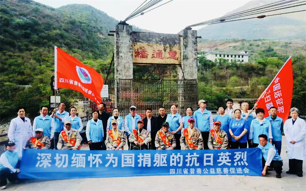 中午,保山市立煌营旅游文化公司李山河经理以丰盛的午宴款待四川一行,四川普善公益则向李总赠送了纪念品。午餐后,大家来到怒江惠通桥凭吊。该桥是滇缅公路咽喉要道,是国际援华物资的必经之处,因此成了日军轰炸的重点。1942年5月5日,因日军进攻,该桥被我军炸毁,彻底粉碎了日军渡过怒江东进、直逼重庆的阴谋,因而该桥被史学界称为“一分钟改变中国命运的桥”。