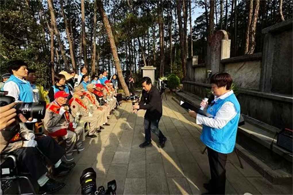 位于松山半山腰的“陆军第八军第一百零三师抗战阵亡将士公墓” 建于1944年12月,此地埋有600多名抗日将士遗体。四川扫墓团一行在墓前举行了庄严肃穆的祭奠仪式,仪式由四川省普善公益促进会会长蒲寒主持。
