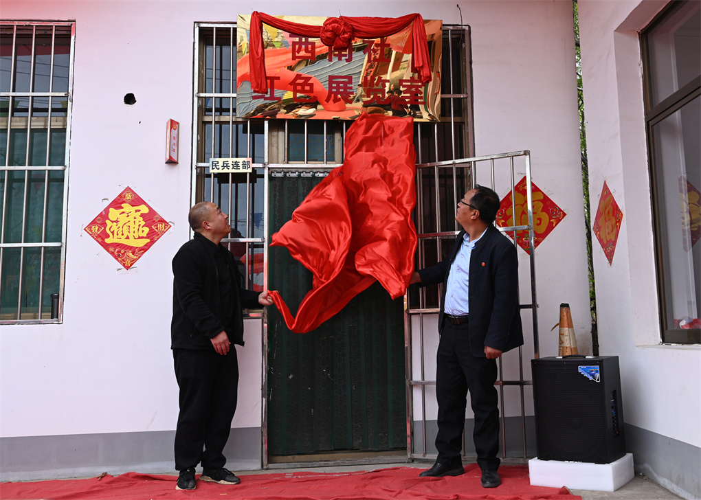 文水县红色文化传承志愿者协会会长张小虎与西南社村党支部书记、村委会主任冀志强共同为红色展览室揭牌。