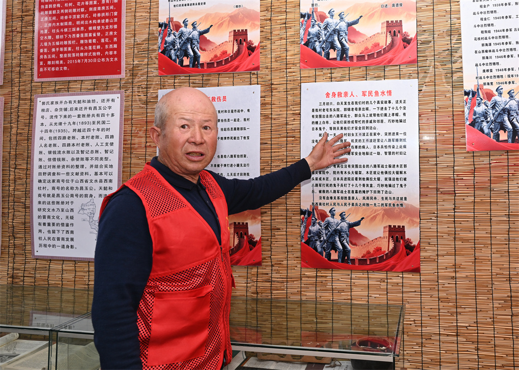 郭春喜,文水县南安镇西南社村农民人,从2017年开始,开始走访、收集、整理西南社村的红色人物、故事、事件,编印《红色小村西南社》,赠送有关部门和村民。在村两委的支持下,利用村里的提供的场所,制作图版,购置展柜摆放收集的老物件、老账本、红色书刊、家谱等100余件(本、册)和古村落、群众文化、乡村振兴等方面的照片、资料100余张,建成了一个村级红色展览室。